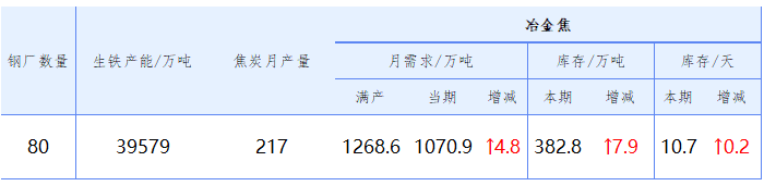 一、獨立焦化企業煤焦庫存匯總(5月4日-5月11日)