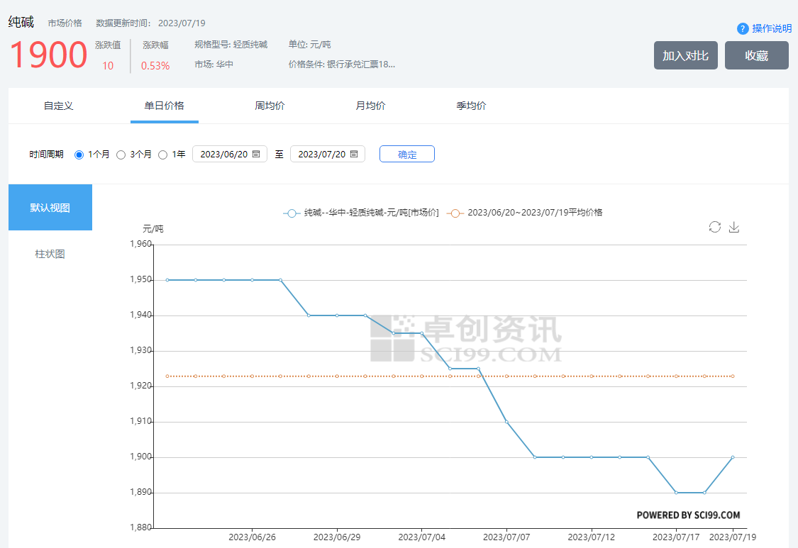 五、玻璃用純堿近一月價格曲線